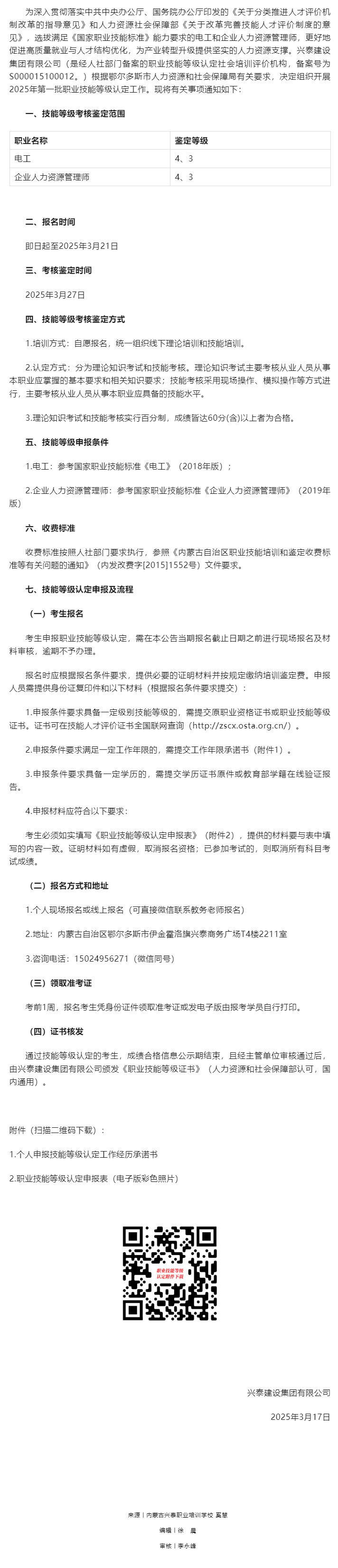 興泰建設(shè)集團(tuán)有限公司2025年第一批職業(yè)技能等級(jí)認(rèn)定公告